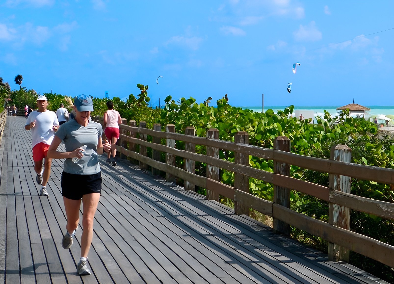 Key Biscayne e South Beach (Miami Beach): Vivendas de alto padrão, iates e vistas abertas. Key Biscayne é símbolo de exclusividade praiana. O Crandon Park, em Key Biscayne, foi eleito um dos melhores por sua praia protegida por corais e por trilhas na sombra de coqueiros – perfeito para jogging inspirador. De lá, corre-se pela Rickenbacker Causeway até o bairro de Brickell, passando por mar aberto. South Beach, por sua vez, combina o Art Déco como moldura para ritmos fitness: os corredores chamam atenção desfilando nas areias claras da South Pointe Park, um parque urbano sofisticado com pista à beira-mar e ciclovia.